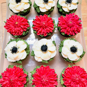 Our signature floral cupcakes elevate any celebration! Larger than our regular cupcake they are perfect for weddings, showers, birthdays or any extra special event. Available in bakery boxes for your own display or one of our custom made Number/Letter Boxes or Bouquets. All cupcakes are made to order. For a quote, please contact me. Cupcake prices are based on specific orders and confirmed by quote. Cupcakes are from $75 per dozen (vanilla/Chocolate sponge) and $85 for additional flavors/fillings.